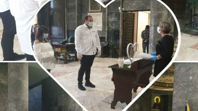 Στην ουσία πρόκειται για μία διοικητική πράξη για την οποία ελήφθησαν αυστηρά μέτρα, σύμφωνα με τα όσα προβλέπει ο νόμος. Συγκεκριμένα: ο γάμος, αντί να γίνει στην αίθουσα εθιμοτυπίας ως είθισται, τελέστηκε στο ναϋδριο που βρίσκεται στην είσοδο του Δημαρχιακού Μεγάρου, παρουσία μόνο δύο μαρτύρων-μάλιστα, ένας εκ των οποίων εκτελούσε και χρέη φωτογράφου-οι οποίοι τηρούσαν μεγάλη απόσταση.
