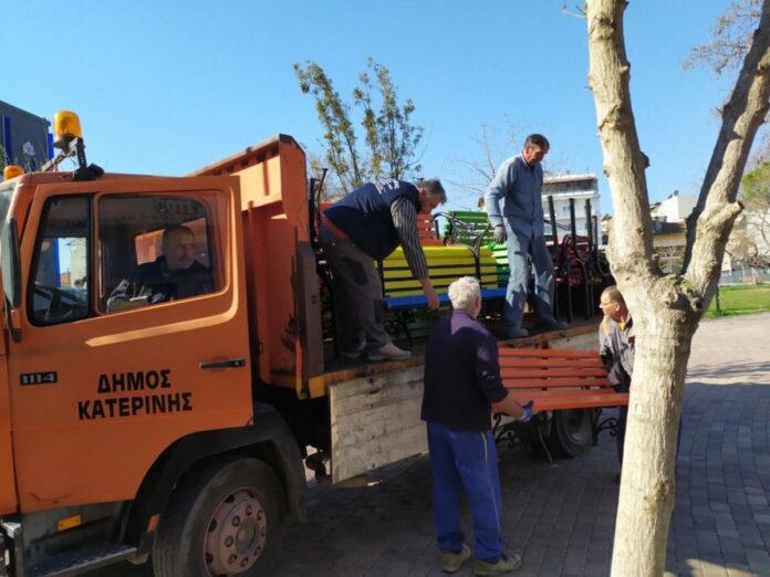 Αυστηρά μέτρα για να αποφευχθεί ο συνωστισμός πολιτών σε πάρκα και πλατείες, πήρε ο Δήμος Κατερίνης. Συγκεκριμένα, κατόπιν εντολής του δημάρχου Κώστα Κουκοδήμου σε συνεννόηση με την Αστυνομική Διεύθυνση Πιερίας, συνεργεία του δήμου ξηλώνουν τα παγκάκια από όλους τους κοινόχρηστους χώρους της πόλης από νωρίς το πρωί.