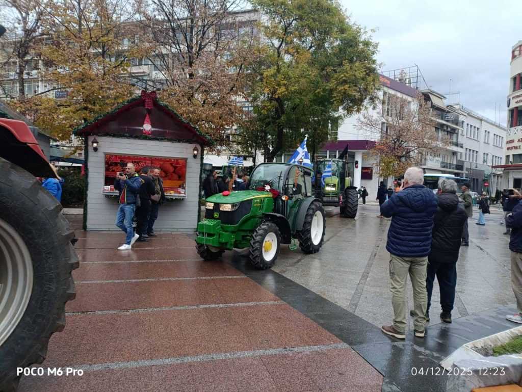 Οι αγρότες από το μπλόκο της Νίκαιας πραγματοποίησαν συλλαλητήριο με συμβολικό αριθμό τρακτέρ στην κεντρική πλατεία, ζητώντας να αθωωθούν οι δύο αγροτες.