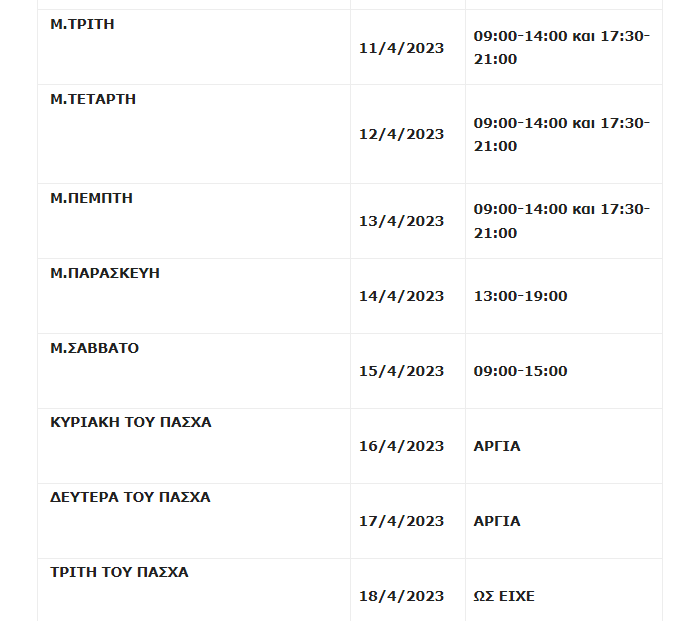 Ο Εμπορικός Σύλλογος Λάρισας, ανακοινώνει το προτεινόμενο ωράριο λειτουργίας των εμπορικών καταστημάτων της πόλης μας (κατά πλειοψηφία), που θα ισχύσει για την εορταστική περίοδο του Πάσχα 2023.
