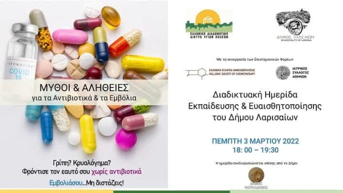 Η Αντιδημαρχία Κοινωνικής Πολιτικής και το Ελληνικό Δίκτυο Υγιών Πόλεων (ΕΔΔΥΠΠΥ) συμμετέχοντας στις διεθνείς εκστρατείες του Π.Ο.Υ., διοργανώνουν σε συνεργασία με την Αντιδημαρχία Διοίκησης Παιδείας & Δια Βίου Μάθησης (Δ.Β.Μ.) και την Ελληνική Εταιρεία Χημειοθεραπείας Διαδικτυακή ημερίδα ενημέρωσης, σχετικά με την ορθή χρήση των Αντιβιοτικών και τη σημασία των Εμβολίων.