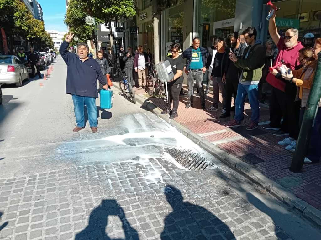 Στο σημείο βρίσκονται ισχυρές αστυνομικές δυνάμεις, ενώ οι κτηνοτρόφοι, οι οποίοι διαμαρτύρονται με έντονο τρόπο, έχυσαν γάλα στο δρόμο, ενώ ζητούν να ανέβουν στο γραφείο του κ. Κέλλα, ο οποίος ωστόσο βρίσκεται εκτός Λάρισας.