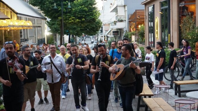 Οι μουσικοί συγκεντρώθηκαν με τα όργανά τους στο χώρο μπροστά από το Αρχαίο Θέατρο και στη συνέχεια, με μουσικές και τραγούδια, κατευθύνθηκαν μέσω των πεζοδρόμων στην πλατεία Αριστείδη Λαμπρούλη, στο Φρούριο της πόλης, όπου μουσικά σύνολα της Λάρισας τραγούδησαν για τους παρισταμένους.