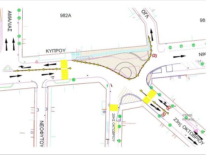 Με κανονικούς ρυθμούς συνεχίζονται τα έργα του Δήμου Λαρισαίων για την κατασκευή κυκλικού κόμβου στη συμβολή των οδών Κύπρου, Νικηταρά, 23ης Οκτωβρίου κλπ.