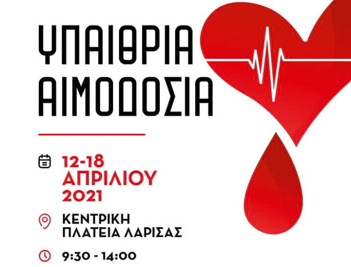 Για διευκόλυνση των αιμοδοτών η αιμοληψία θα πραγματοποιηθεί στην Κεντρική Πλατεία της Λάρισας 12-18 /4 /2021