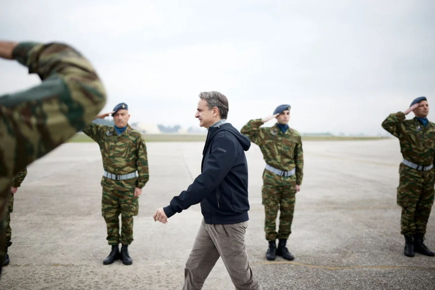 Ο Πρωθυπουργός Κυριάκος Μητσοτάκης επισκέφθηκε το πρωί την 110 Πτέρυγα Μάχης (ΠΜ) στην Αεροπορική Βάση Λάρισας, πρώτο σταθμό της επίσκεψης που πραγματοποιεί σήμερα στη Λάρισα.