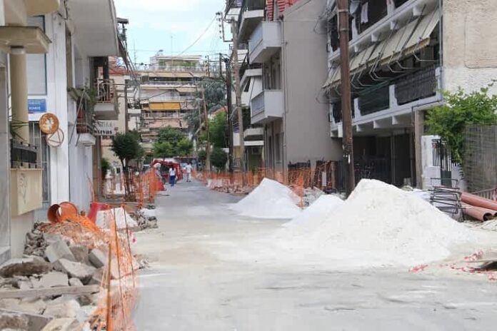 Έως σήμερα έχει ολοκληρωθεί η ανακατασκευή των πεζοδρομίων σε ποσοστό 90% και απομένει η ολοκλήρωση των χωματουργικών εργασιών και η ασφαλτόστρωση. Σημειώνεται ότι λόγω των υψηλών θερμοκρασιών των τελευταίων ημερών κρασίες της προηγούμενης εβδομάδας αλλά και της τρέχουσας δυσχεραίνεται η πλήρη ολοκλήρωση των εργασιών σκυροδέτησης και πλακόστρωσης και τα συνεργεία έχουν περιορίσει τις εργασίες τους.