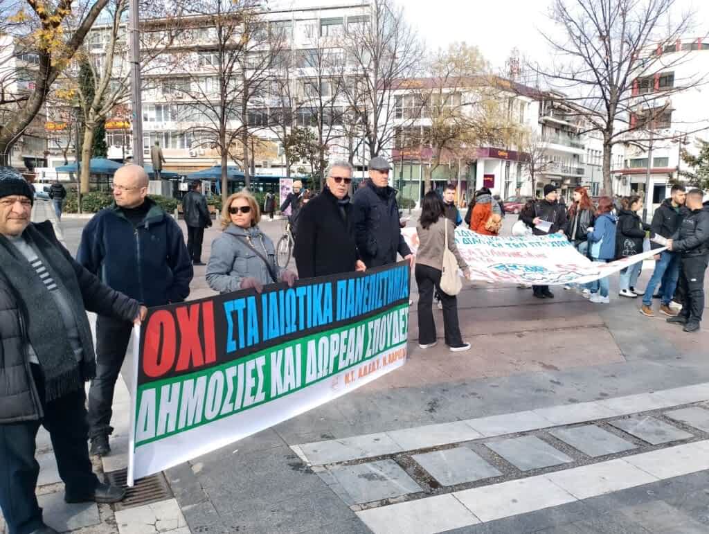 Η πρώτη κινητοποίηση κατά της πρόθεσης της κυβέρνησης να επιτρέψει την ίδρυση ιδιωτικών Πανεπιστημίων, πραγματοποιήθηκε σήμερα το μεσημέρι στη Λάρισα, με διοργανωτές φοιτητικούς συλλόγους.