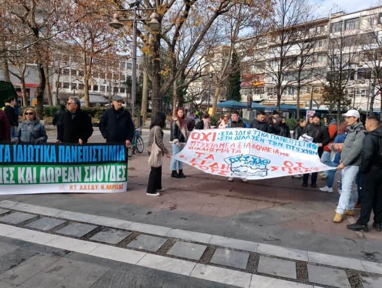 Η πρώτη κινητοποίηση κατά της πρόθεσης της κυβέρνησης να επιτρέψει την ίδρυση ιδιωτικών Πανεπιστημίων, πραγματοποιήθηκε σήμερα το μεσημέρι στη Λάρισα, με διοργανωτές φοιτητικούς συλλόγους.