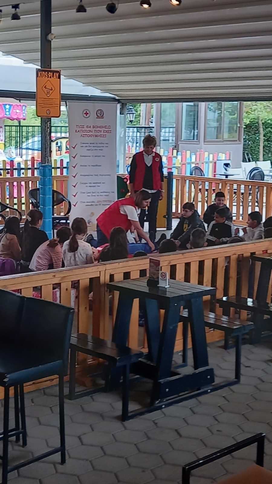 Α. Εκπαιδευτική δράση για μαθητές/τριες Γ΄ και Δ΄ Δημοτικού με τίτλο: «Γίνε Ήρωας Πρώτων Βοηθειών – Μικροί και Μεγάλοι Σώζουν Ζωές», με στόχο την επαφή με τις βασικές αρχές Πρώτων Βοηθειών με διαδραστικό και ψυχαγωγικό τρόπο. Δομή Προγράμματος: 1. Εισαγωγική Παρουσίαση από τον Ερυθρό Σταυρό με απλό και κατανοητό λόγο, διανθισμένη με ερωτήσεις/κουίζ. 2. Βιωματικοί Σταθμοί (4×15’ σε κυκλική ροή). Σταθμός Α: «Δέσιμο Σαν Ήρωας» – Μαθαίνουμε να περιποιούμαστε τραύματα. Σταθμός Β: «Σωστή Κλήση – 166» – Παιχνίδι ρόλων για σωστή επικοινωνία με τις υπηρεσίες. Σταθμός Γ: «Μπουκιά SOS!» – Εκπαίδευση σε πνιγμονή και Heimlich. Σταθμός Δ: «Σώσε το Αρκουδάκι!» – Εκμάθηση βασικών κινήσεων ΚΑΡΠΑ.
