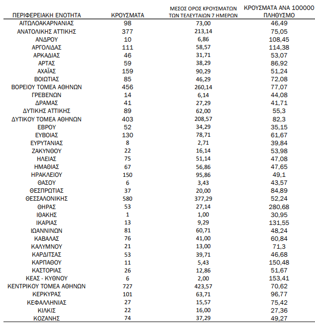 Σύμφωνα με την ημερήσια έκθεση του ΕΟΔΥ στην περιοχή μας καταγράφηκαν 168 νέες μολύνσεις από τον ιό.