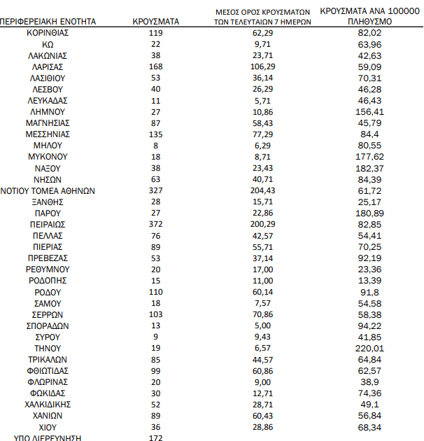 Σύμφωνα με την ημερήσια έκθεση του ΕΟΔΥ στην περιοχή μας καταγράφηκαν 168 νέες μολύνσεις από τον ιό.