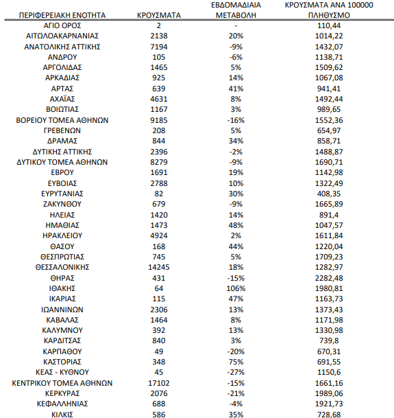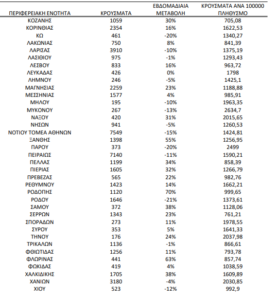 ΛΑΡΙΣΑ Λάρισα: Τα νέα κρούσματα κορονοϊού την τελευταία εβδομάδα (11/7 με 18/7) 19 Ιουλίου 2022 Τα νέα κρούσματα κορονοϊού στην Περιφερειακή Ενότητα Λάρισας, σύμφωνα με την εβδομαδιαία καταγραφή του ΕΟΔΥ. Στην περιοχή μας καταγράφηκαν στο διάστημα από 11 Ιουλίου ως και 18 του ίδιου μήνα 3.910 νέες μολύνσεις.