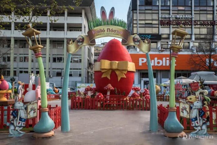 Σε όμορφο και καλαίσθητο σκηνικό με σημείο αναφοράς το μεγάλο πασχαλινό αυγό εκπαιδευτικοί των εκπαιδευτικών δομών του Δήμου Λαρισαίων αλλά και καλλιτεχνικό προσωπικό από τη Δημοτική Πινακοθήκη – Μουσείο Γ. Ι. Κατσίγρα και το Λαογραφικό Μουσείο ήταν εκεί για τα παιδιά με δωρεάν δράσεις.
