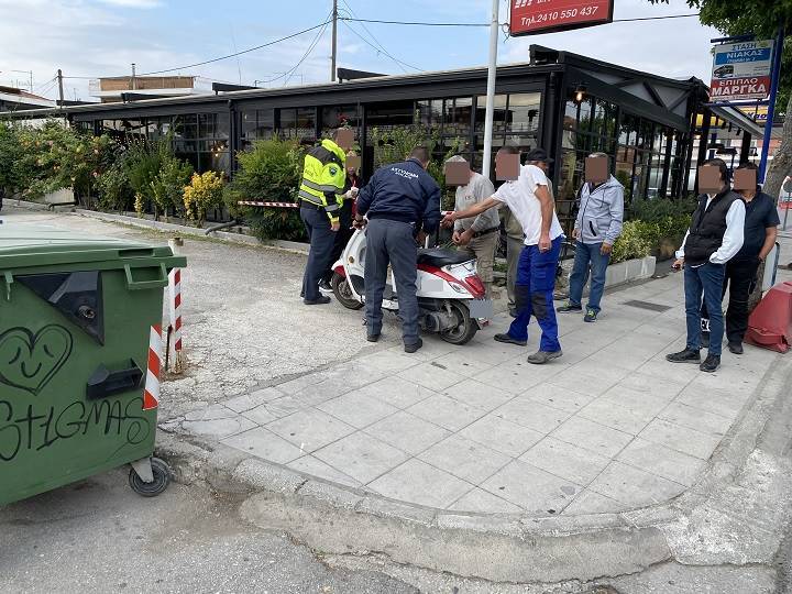 Ασθενοφόρο του ΕΚΑΒ μετέφερε τον οδηγό του δικύκλου (ηλικίας 76 ετών) στο εφημερεύον Γενικό Νοσοκομείο Λάρισας.