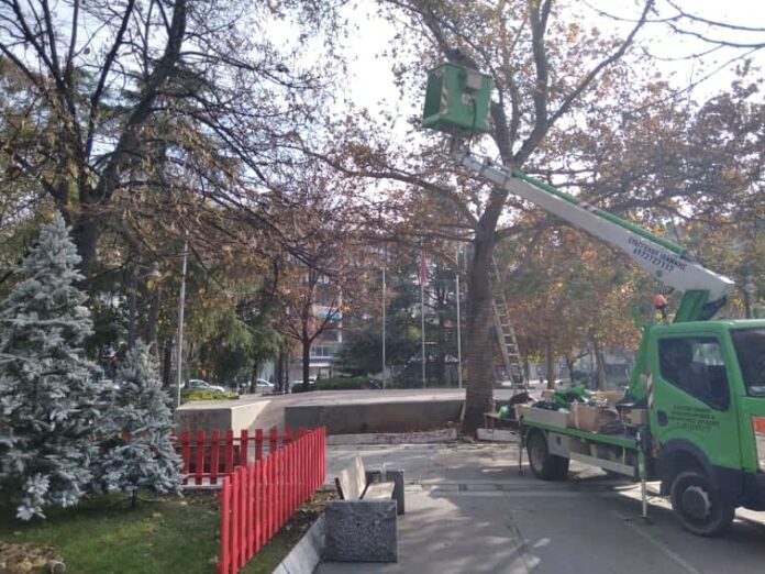 Με χριστουγεννιάτικα στολίδια ντύνεται η κεντρική πλατεία της Λάρισας. Τα συνεργεία βρίσκονται από το πρωί στο κέντρο της πόλης και φροντίζουν να προσδώσουν έναν εορταστικό τόνο στην πόλη στην εποχή της πανδημίας.