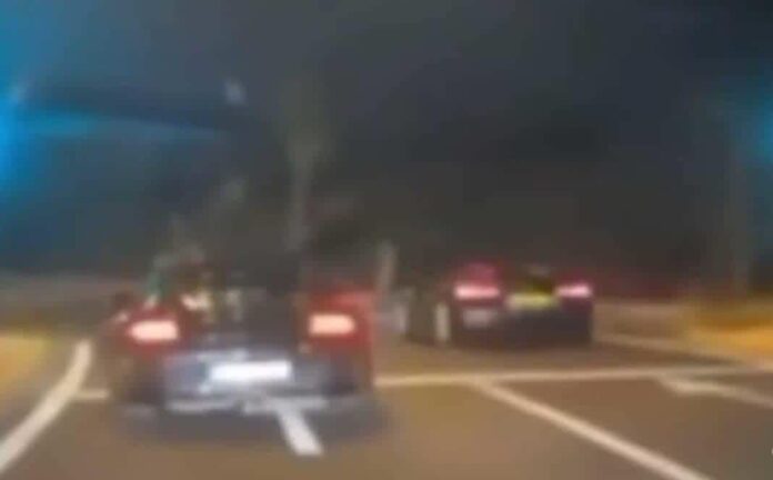 Δίπλα του διακρίνεται το όχημα που αναζητούσε η τροχαία, το οποίο διαθέτει κίτρινες -πιθανώς βρετανικές- πινακίδες, και φαίνεται ότι εκκινεί αρκετά πιο γρήγορα. Το βίντεο σταματά λίγες στιγμές πριν το δυστύχημα.