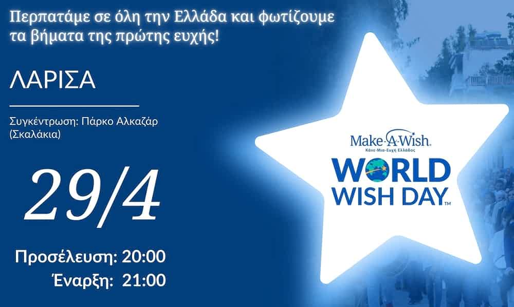 Make A Wish | 29 Απριλίου Παγκόσμια Ημέρα Ευχής – Περπατάμε στα βήματα της πρώτης ευχής στη Λάρισα, ξεκινώντας από το Πάρκο Αλκαζάρ (Σκαλάκια)!