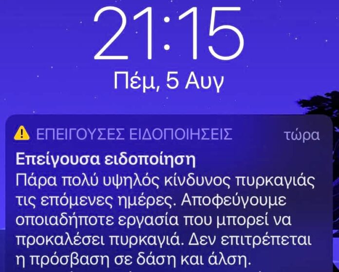 Μήνυμα από το 112 έφτασε λίγο πριν και στους Λαρισαίους με οδηγίες αυτοπροστασίας για τον υψηλό κίνδυνο πυρκαγιάς.