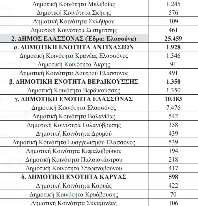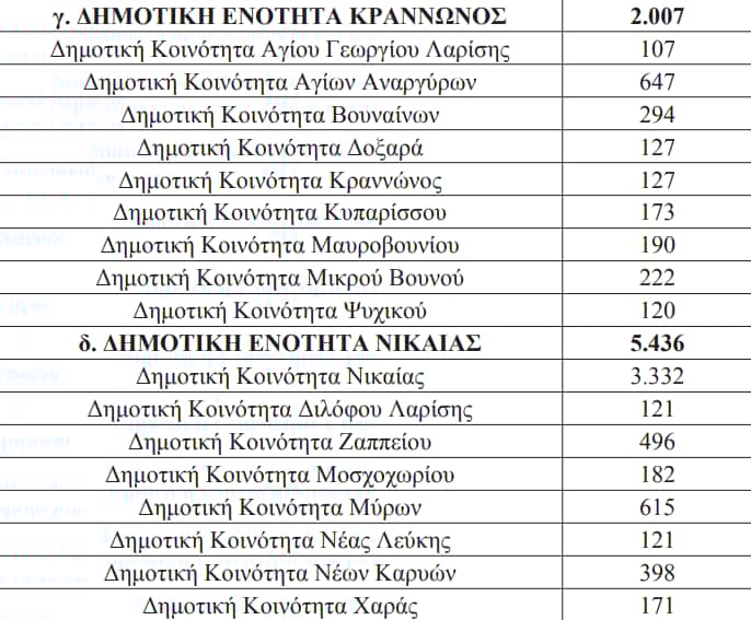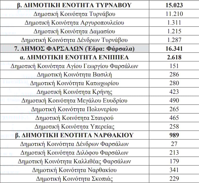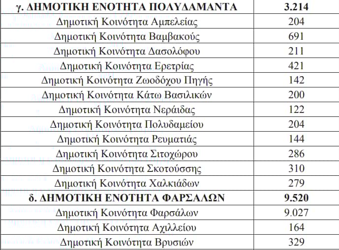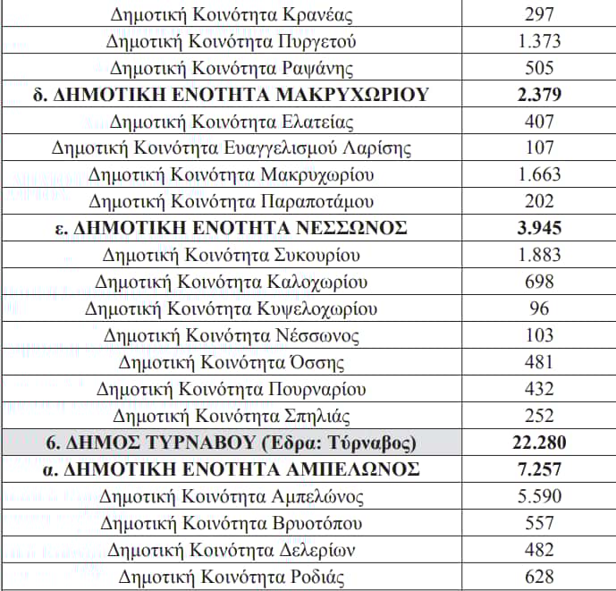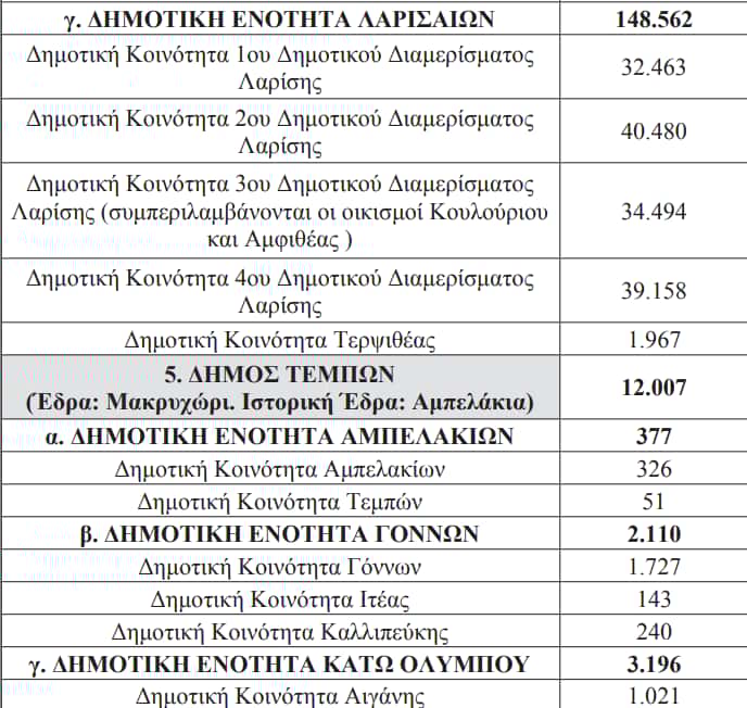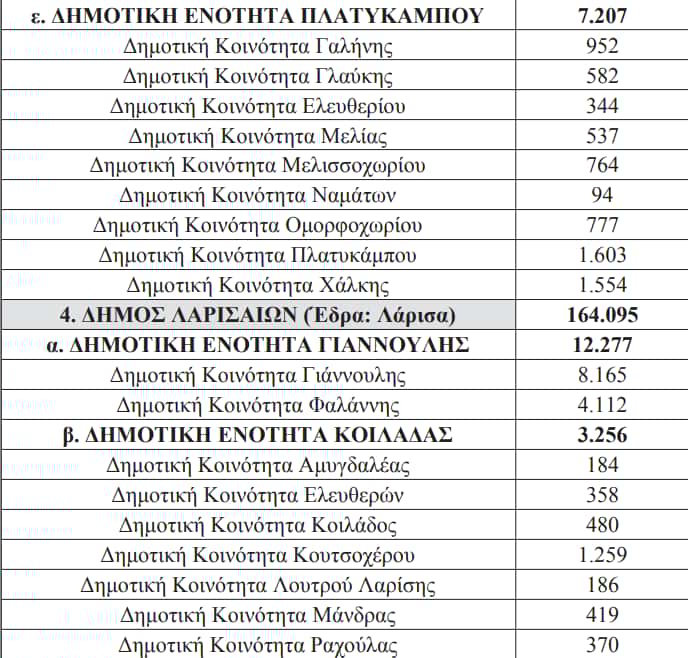 - Στον Δήμο Λαρισαίων ο πληθυσμός ανέρχεται σε 164.095 κατοίκους.