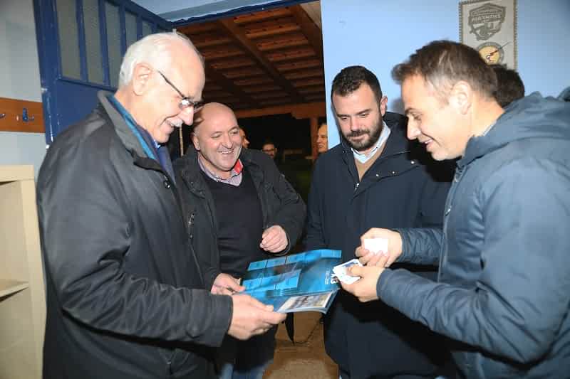 Οι παριστάμενοι τοπικοί παράγοντες εξέφρασαν τις ευχαριστίες τους προς τον δήμαρχο για το έργο αντικατάστασης του φωτισμού στο γήπεδο.