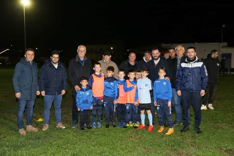 Οι παριστάμενοι τοπικοί παράγοντες εξέφρασαν τις ευχαριστίες τους προς τον δήμαρχο για το έργο αντικατάστασης του φωτισμού στο γήπεδο.