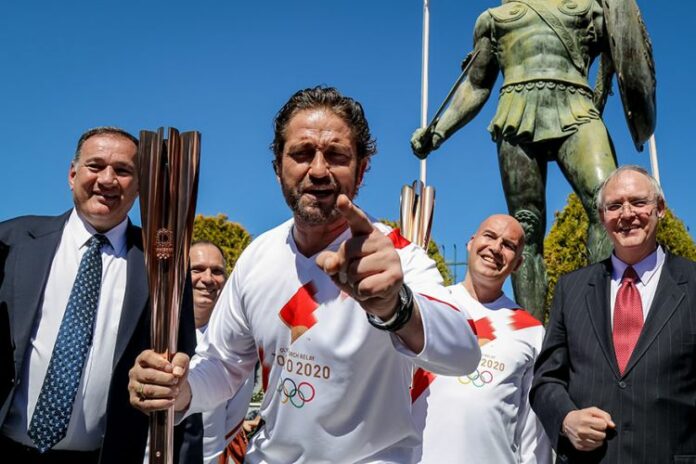 Ο διάσημος ηθοποιός Gerard Butlet που υποδύθηκε τον Λεωνίδα στην ταινία 300 ανάβει το βωμό στην Σπάρτη με την Ολυμπιακή Φλόγα#Tokyo2020 #butler #OlympicFlame
