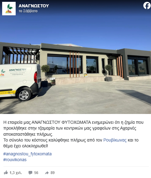 Μάλιστα, το περιστατικό γνωστοποίησε η ίδια η εταιρεία με ανάρτησή της στο Facebook.
