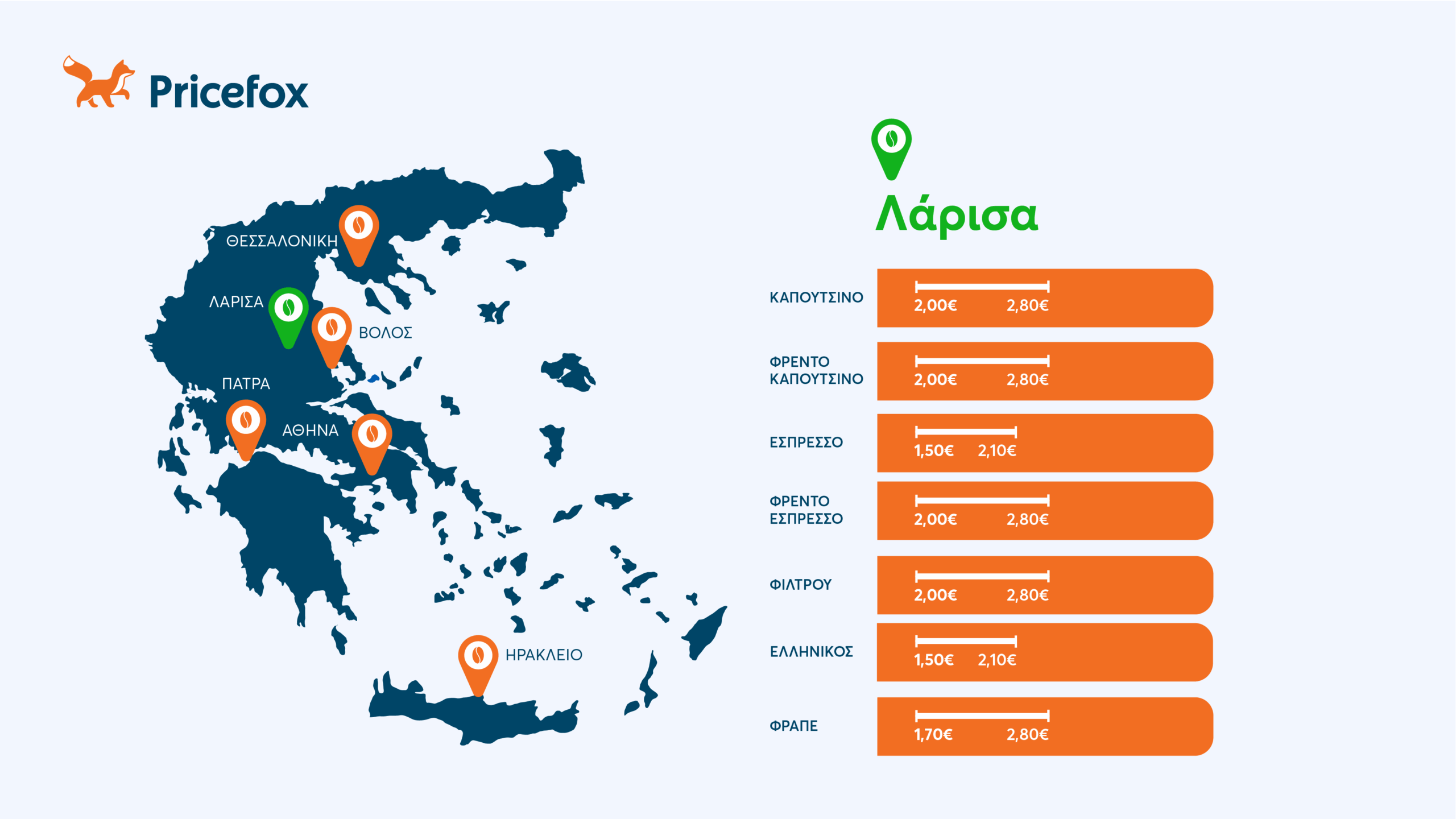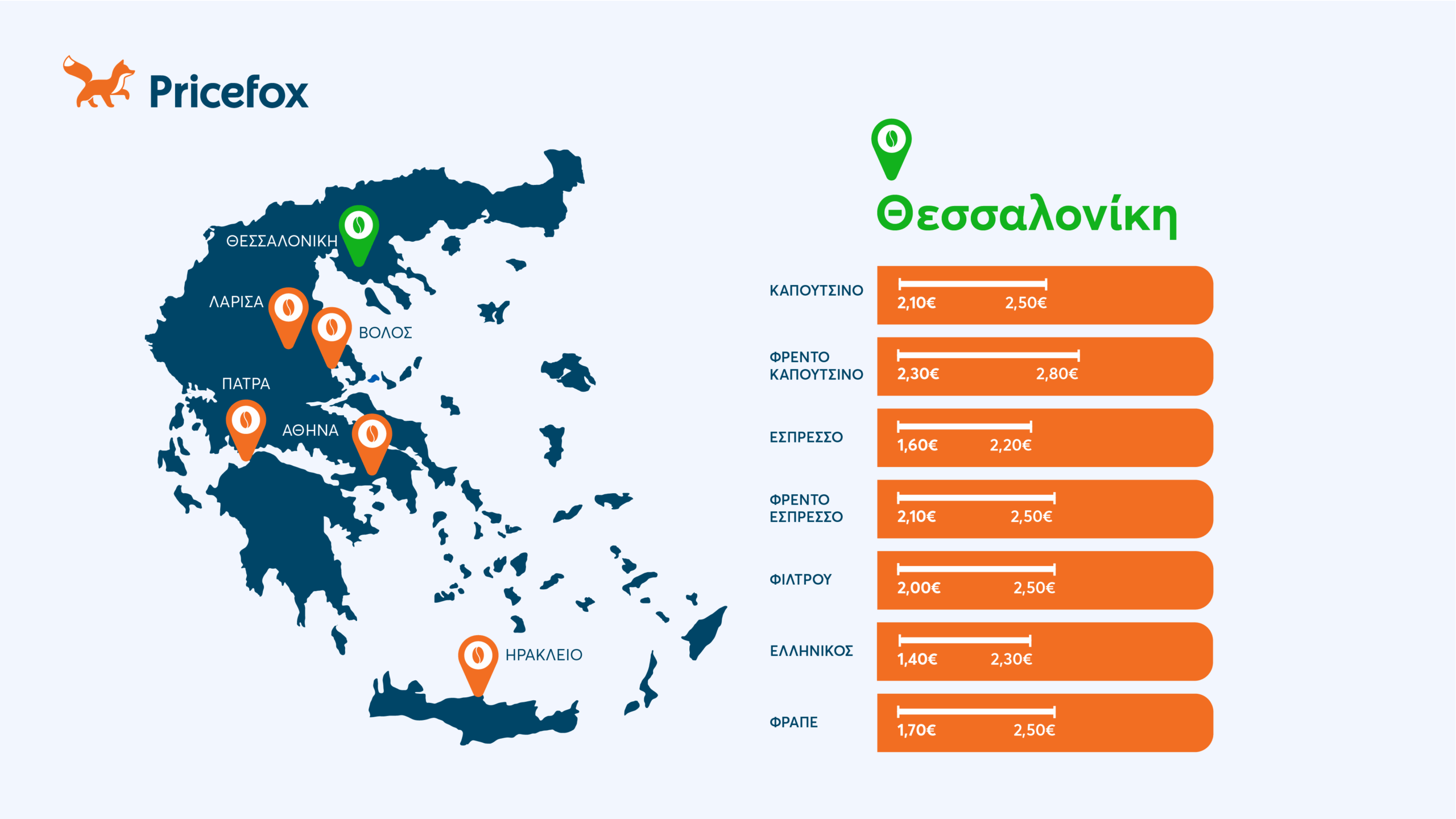Το Pricefox, ο σύμβουλός σου στην εξοικονόμηση και η πλατφόρμα σύγκρισης και αγοράς ασφαλειών αυτοκινήτου, επιστρέφει και φέτος με τη σύγκριση τιμών καφέ στις μεγαλύτερες πόλεις της Ελλάδας.