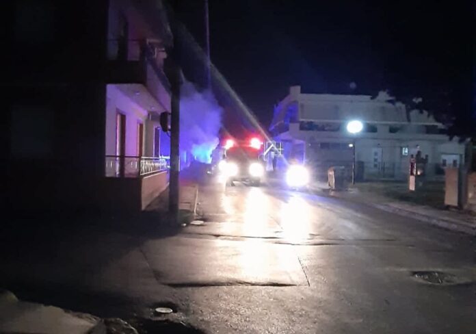 Η φωτιά σβήστηκε από τους Πυροσβέστες, ενώ στην περιοχή προσήλθαν επιπλέον δυνάμεις της Αστυνομίας.