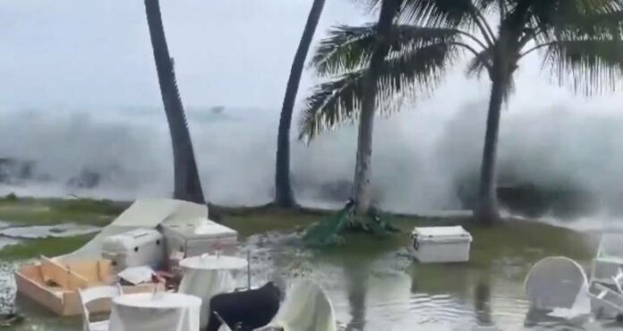 Έτσι όταν το τεράστιο κύμα βγήκε στην ακτή, όχι μόνο παρέσυρε τα πάντα, αλλά έκανε και τους καλεσμένους να τρέχουν να γλιτώσουν από την ορμή του.