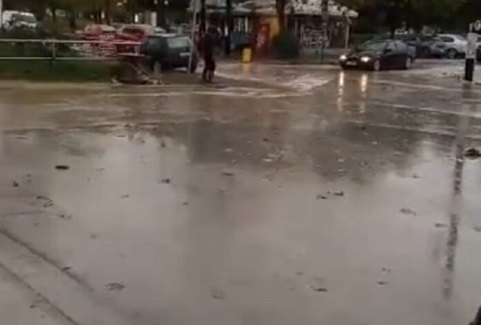 Η δυνατή βροχόπτωση που χαρακτηρίζει από το πρωί τον καιρό και στον Αμπελώνα, σε συνάρτηση με τα έργα της αποχέτευσης που βρίσκονται σε εξέλιξη στην περιοχή, προκάλεσαν πλημμυρικά φαινόμενα στο κέντρο του Αμπελώνα και ειδικότερα στο κομμάτι που βρίσκεται δίπλα στην τάφρο.