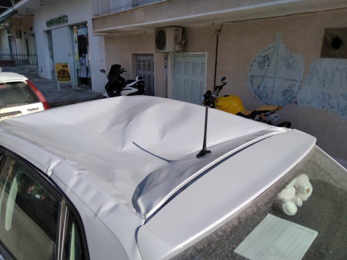 Το σώμα της γυναίκας έπεσε από τη βεράντα στην οροφή αυτοκινήτου, ενώ σε λίγα λεπτά μεταφέρθηκε στο Γενικό Νοσοκομείο της Λάρισας.