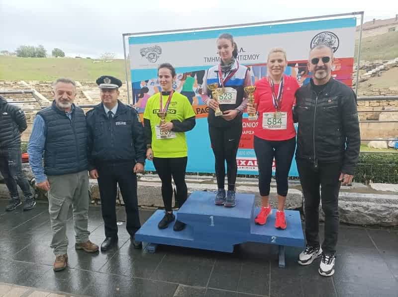 Στις γυναίκες πρώτη τερμάτισε η φοιτήτρια Ιατρικής του Πανεπιστημίου Θεσσαλίας Ελένη Βερελοπούλου με χρόνο 22:56 και ακολούθησαν οι Βασιλική Κώστα και Ελένη Κακαρόντζα.