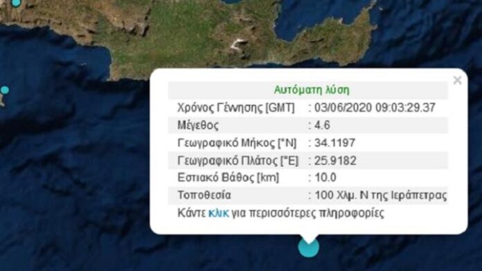 Ο σεισμός σημειώθηκε τρία λεπτά μετά τις 12.00 το μεσημέρι. Σύμφωνα με το Γεωδυναμικό Ινστιτούτο, το μέγεθός του ήταν 4,6 Ρίχτερ.