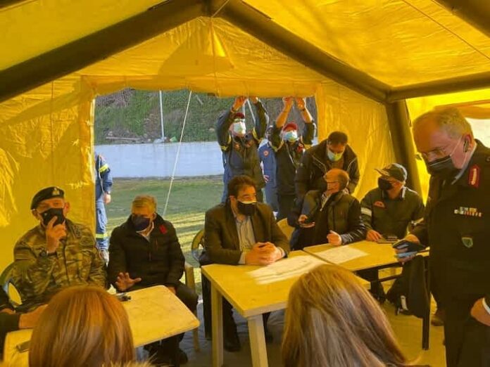 Ξεκίνησε στο γήπεδο «Δημήτρης Μουσιάρης» η σύσκεψη του κυβερνητικού κλιμακίου για τον σεισμό που «χτύπησε» την περιοχή.