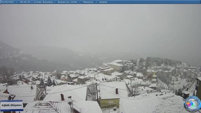 Στα λευκά είναι ντυμένο το πρωινό της Κυριακής 21 Μαρτίου το Λιβάδι Ελασσόνας. Από την καιρική κάμερα του Ράδιο Πόλις 99,4 βλέπετε ζωντανή εικόνα και απέναντι σε πρώτο πλάνο τον Όλυμπο!