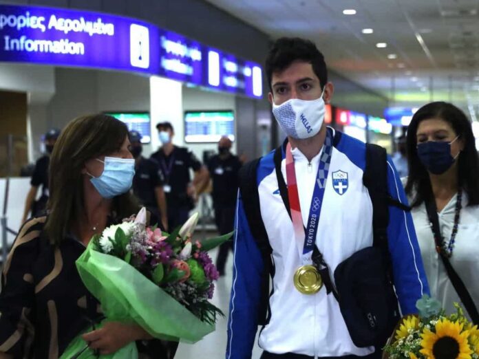 Πάνω σ΄ έναν Ολυμπιονίκη, «έπεσαν» οι λιγοστοί που βρέθηκαν λίγο μετά τα μεσάνυχτα στην αίθουσα αφίξεων του «Ελευθέριος Βενιζέλος».