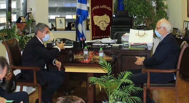 Στη συνάντηση που πραγματοποιήθηκε σε ιδιαίτερα καλό κλίμα ο δήμαρχος Λαρισαίων συζήτησε με τον κ Λοβέρδο για τα θεσμικά ζητήματα που απασχολούν την Τοπική Αυτοδιοίκηση, ενώ τον ενημέρωσε για θέματα που αφορούν στη πορεία του Δήμου Λαρισαίων.