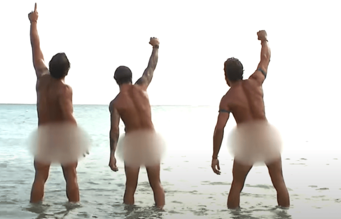Ξαφνικά πέταξαν ότι περιττό είχαν επάνω τους και βούτηξαν ολόγυμνοι στην θάλασσα. Την αρχή έκανε ο Ηλίας Μπόγδανος αλλά σε αυτήν του την απόπειρα είχε και πολλούς υποστηρικτές, αφού τον ακολούθησαν ο Γιώργος Κόρομι αλλά κι ο Γιώργος Ασημακόπουλος. Οι τρεις τους απολάμβαναν την δροσιά της θάλασσας κι η Καρολίνα Καλύβα δεν ήθελε να μείνει πίσω κι έτσι πέταξε και το δικό της μαγιό. Η Ελένη Χαμπέρη δεν πίστευε στα μάτια της ότι εκτυλίχθηκε κάτι τέτοιο μπροστά της κι έμεινε με το στόμα ανοιχτό. Βέβαια από συστολή δεν επέλεξε να κάνει το ίδιο κι έτσι ήταν η μόνη, που απόλαυσε την θάλασσα με το μαγιό της.