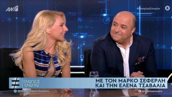 Ήμουν όμως υποχρεωμένη να τον ακολουθήσω, ήμουν υποχρεωμένη να βάλω πλάτη για να κάνει εκείνος το όνειρό του πραγματικότητα. Και το έκανα! Και ευτυχώς που το έκανα και ευτυχώς που πίστεψα τελικά σε αυτό που πίστεψε εκείνος εξ αρχής γιατί ήταν αυτό που τον κάνει ευτυχισμένο και δόξα τω Θεώ χάρη σε αυτό είμαστε σε μια καλή κατάσταση», είπε η Έλενα Τσαβαλιά.