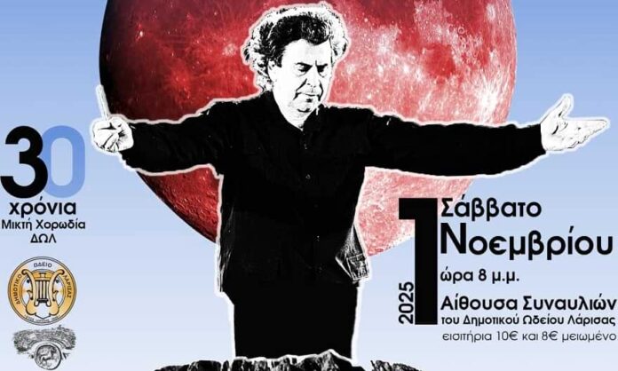 Μία ξεχωριστή συναυλία – αφιέρωμα στην επέτειο των 100 χρόνων από τη γέννησή του μεγάλου Έλληνα δημιουργού Μίκη Θεοδωράκη, με τίτλο “Η άλλη πλευρά του φεγγαριού”, διοργανώνουν η Αντιδημαρχία Πολιτισμού του Δήμου Λαρισαίων και το Δημοτικό Ωδείο Λάρισας. Η συναυλία, φόρος τιμής στη διαχρονική μουσική κληρονομιά ενός συνθέτη που με τη ζωή και το έργο του σημάδεψε την πολιτιστική ταυτότητα της Ελλάδας, θα πραγματοποιηθεί το Σάββατο 1η Νοεμβρίου 2025, στις 8:00 μ.μ., στην Αίθουσα Συναυλιών του Δημοτικού Ωδείου Λάρισας.