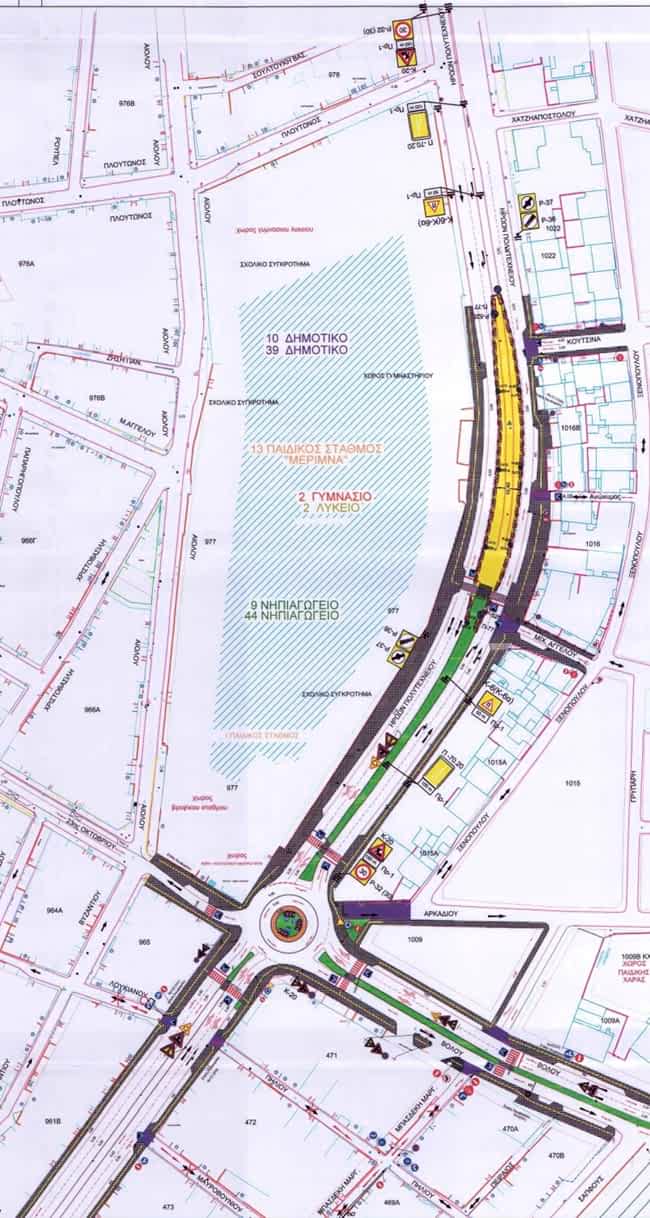 Για της ανάγκες ανακατασκευής της κεντρικής νησίδας, θα εφαρμοστούν προσωρινές κυκλοφοριακές ρυθμίσεις, με την κυκλοφορία να διεξάγεται σε μία λωρίδα κυκλοφορίας, όπως προβλέπεται από τη σχετική εγκεκριμένη μελέτη προσωρινών κυκλοφοριακών ρυθμίσεων εργοταξιακού χαρακτήρα (Α6 και Α15). Κατά τη διάρκεια των εργασιών στην οδό Ηρώων Πολυτεχνείου, η κυκλοφορία των οχημάτων διεξάγεται σύμφωνα με τις προβλεπόμενες πληροφοριακές και ρυθμιστικές πινακίδες που έχουν τοποθετηθεί από τον ανάδοχο του έργου.