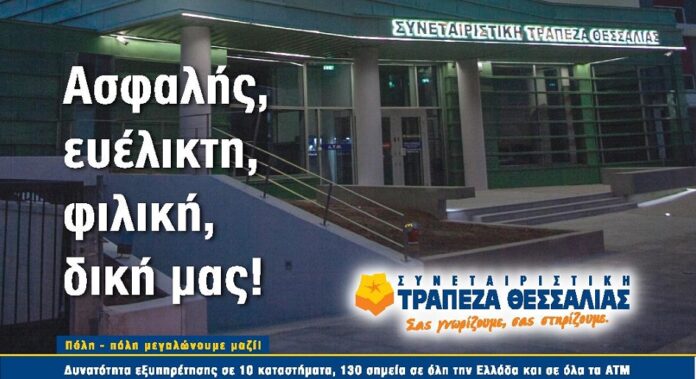 Η Συνεταιριστική Τράπεζα Θεσσαλίας συμμετέχει στο νέο πρόγραμμα χορήγησης δανείου για κεφάλαιο κίνησης με πλήρως επιδοτούμενο επιτόκιο σε συνεργασία με την Αναπτυξιακή Τράπεζα.