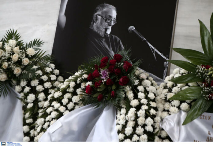 Επικήδειους εκφώνησαν επίσης ο Γιώργος Κιμούλης, ο Οδυσσέας Ιωάννου και ο Δημήτρης Κουτσούμπας.