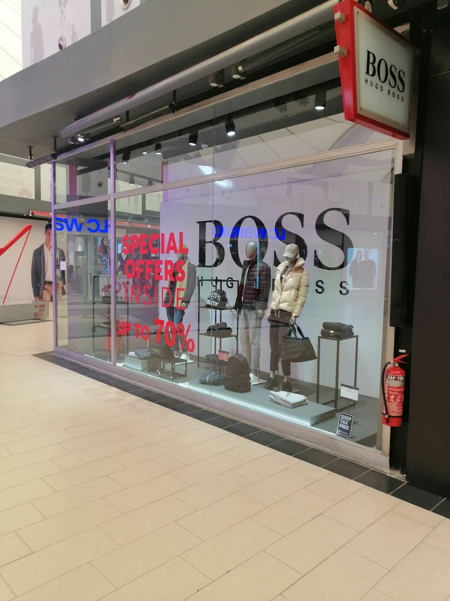 - BOSS: Κοστούμι ανδρικό με αρχική τιμή 549€ και τελική τιμή 179€