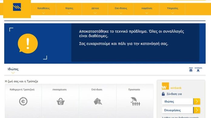 Ήδη, το winbank έχει αποκατασταθεί, ενώ αποκαθίστανται και οι υπόλοιπες υπηρεσίες.