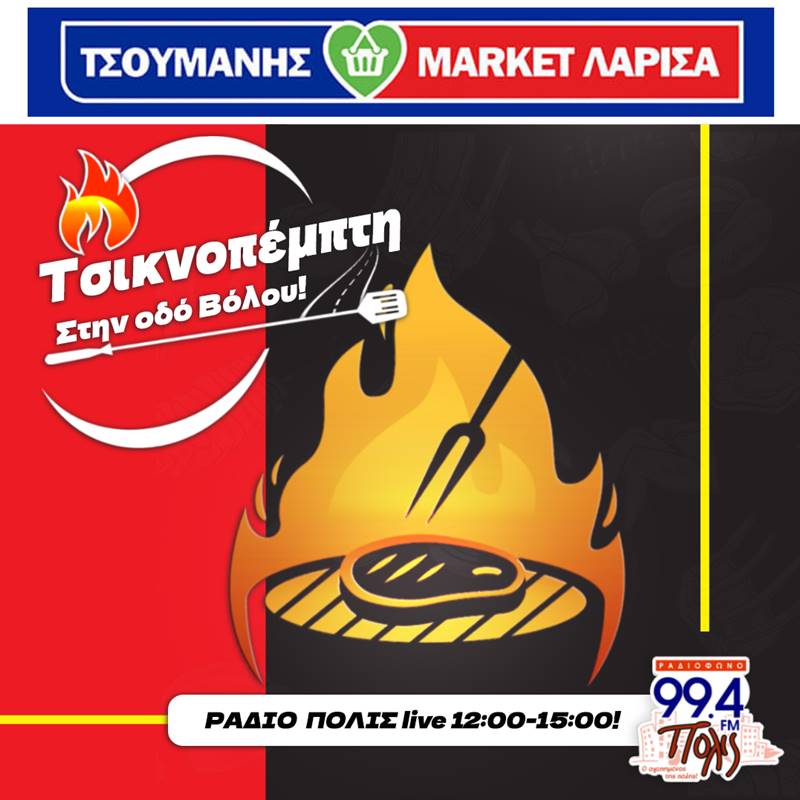 Τσικνοπέμπτη στην οδό Βόλου …Το Τσουμάνης Μάρκετ και ο Πόλις 99,4 σας προσκαλούν την Τσικνοπέμπτη 16 Φεβρουαρίου να το γιορτάσουμε παρέα.