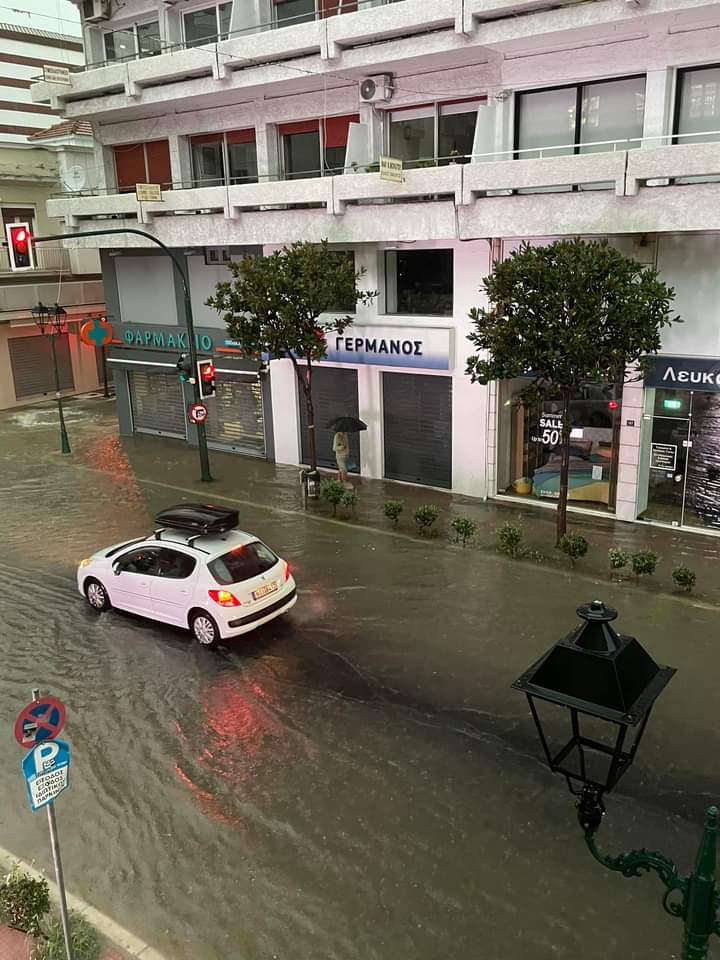 Με δυσκολία γίνεται απ΄το πρωί, η κίνηση των οχημάτων, ενώ είναι μεγάλος ο όγκος νερού, με συνέπεια να αναβλύζουν νερό τα φρεάτια στη Δημητριάδος!