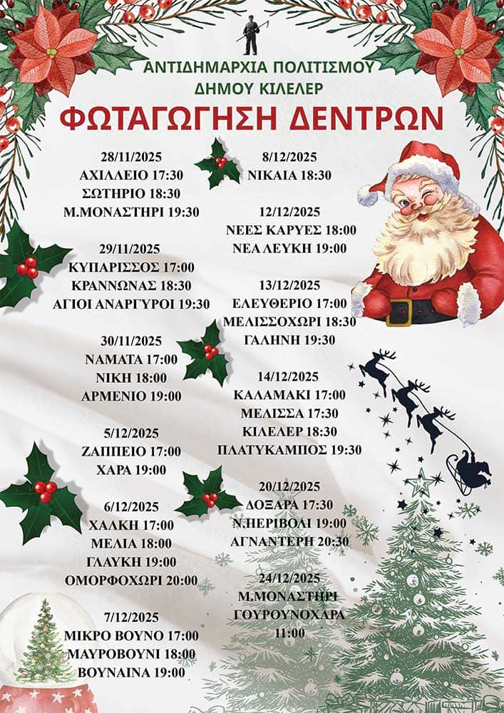 Ξεκίνησαν με ιδιαίτερη επιτυχία η χριστουγεννιάτικες εκδηλώσεις με την φωταγώγηση των χριστουγεννιάτικων δέντρων στον Δήμο Κιλελέρ.